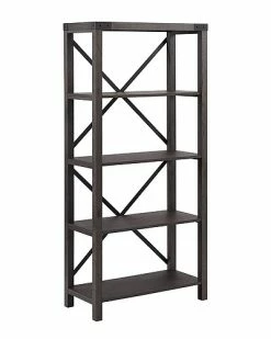 - Greet your study or den with a touch of country charm when you debut this metal-X bookshelf in your space. Its mixed-material silhouette and metal detail create the ideal backdrop for stunning living room or home office decor, while four fixed shelves allow you to create a display thats all your own. Pair with other pieces from the collection to refine your cozy abode with just the right touch of industrial intrigue and bucolic appeal. When it comes to harmonizing comfort and style, X marks the spot with this farmhouse-inspired piece.