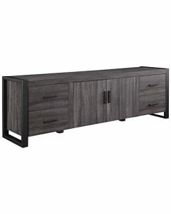 - Design details: Design your ideal living room with style and storage in mind, with our TV stand. Featuring closed storage by having four side drawers and middle cabinet space, youll have plenty of room to keep your electronics and media inside. This entertainment center has metal side legs and handles to contrast against the durable laminate composition, giving it an urban industrial style. Youll enjoy having a more organized living room with this console.