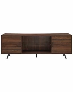 - Design details: Take your living room to the next level with this stylish 70-inch TV stand. Made with metal tapered legs, sleek metal handles, and a center glass shelf for a mid century modern appearance. This high-grade MDF entertainment center creates additional storage space in your home for media, electronics, accessories, books, or decor. Use as a TV stand in your living room, a storage cabinet in your bedroom, or a buffet in your kitchen or dining room. Including two side cabinets for closed storage space and center open shelving. Can support up to a 75-inch TV.