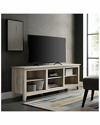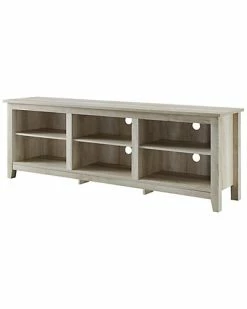 - Design details: Display your TV in style with this 70-inch TV stand. Crafted from high-grade MDF with a durable laminate finish for a rich, textured surface, this storage console features two adjustable shelves on both sides for anything from your electronics to your home decor. With a cord management port at the back of each shelving space, youll never have to worry about a tangled mess of wires as itll keep them organized. This entertainment center mixes a traditional style with the on trend rustic farmhouse look with its simple design and will be a classic piece to your living room. This media stand will accommodate most flat-panel TVs up to 75 inches.