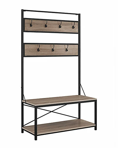 - Design details: Instantly tidy up and organize your hallway or entryway with our industrial hall tree. Perfect for storing your outdoor attire, from hats, coats, and shoes, to umbrellas and recreational gear as it provides a coat rack with seven hooks above and a bench with a shelf below. The high-grade manufactured wood, along with the powder coated metal frame, create an industrial-inspired design. Youll easily have a place to keep your familys jackets and backpacks off the floor, making this hall tree the perfect, practical storage and style piece in your home.