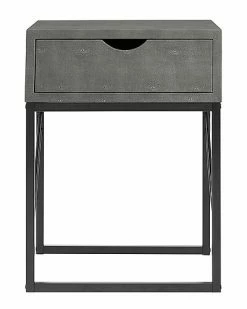 - Showcase your eclectic style with this modern glam side table as a centerpiece in your home. The textured faux shagreen finish and diagonal metal side accents wow guests with their contemporary aesthetic. Keep up pretenses of your mature style by tucking electronic accessories, remotes, and other clutter within the single drawer with a cutout handle. The fabric-lined interior adds an extra sense of class no matter what you place inside. Pair with the entryway and coffee tables to keep the contemporary theme throughout your whole home.
