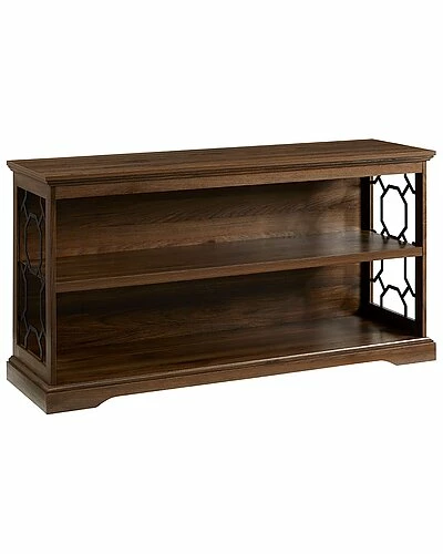 - With this versatile, modern bookshelf, the possibilities are endless. The single adjustable shelf provides a perfect home for all of your storage needs, from displaying books to family photos. The geometric side accents elevate whatever you place inside the frame with traditional style. Place your TV on the top for an easy entertainment corner or use in the entryway to show off seasonal spirit. The sturdy frame is made from warp-resistant MDF, durable laminate, and powder-coated steel, so you can rely on it to last.