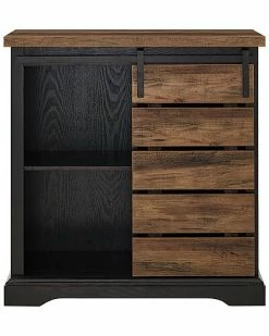 - A trendy bar cabinet ready to display your finest stemware. A home to your extra linens. An entertainment console with room to spare for gaming systems. This modern farmhouse accent cabinet can do it all, as it reinterprets modern storage with a sliding door and semi-open display space. An adjustable shelf lends the piece its versatility as a stylish storage unit where you can pop the shelf in for structured display space, or leave it out for more room to stow large items. With exposed, black-painted metal hardware that exudes a subtle farmhouse charm and its mobile slat-door design, this piece is sure to slide seamlessly into the heart of your home.