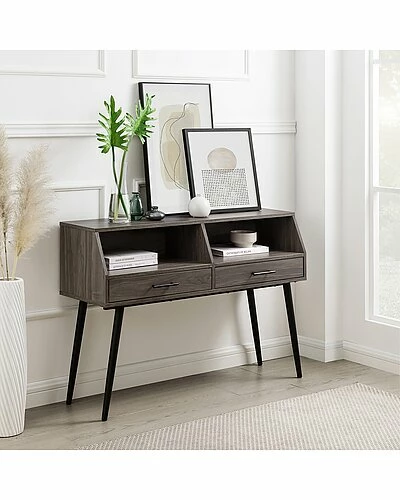 - Color/finish: slate gray laminate with sanded black metal legs & hardware