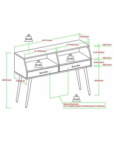 - Measures 30in H x 44in L x 14in w