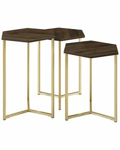 - Design details: Designed with uniqueness and modern style in mind, this set of nesting tables will make a stunning transitional statement to your home. Their versatility gives you options to choose where you want to place them, making it easy to find a use for each. All are made with hexagon shaped table tops and metal framing for a mixed element appeal. From pairing the three together in your living room for displaying decor on and then when room is needed simply fit them together to save space or spread them out among your home and use one as a side table next a chair, the other a sofa table, and the last as a nightstand in your bedroom.