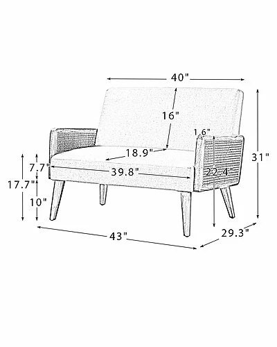 - Measures 43in w x 29.3in d x 31in hin