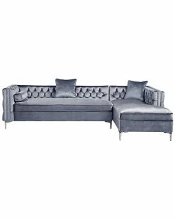 - Design details: Chrome construction; button tufted velvet fabric; silver nail head trim; square arms; high density foam padding; Y-shaped silver chrome metal legs; large storage compartment; three throw pillows included; sturdy plywood frame
