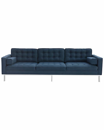 - Design details: Foam construction; deep button tufted linen; square arms; high density foam padding; straight silver tone chrome metal legs; two throw pillows included; plywood frame