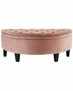 - Design details: Foam construction; button tufting; soft velvet fabric; gold tone nail head trim; lift top with safety hinge; storage compartment; wooden legs; plywood frame