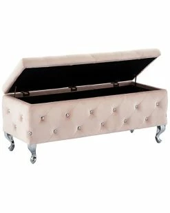 - Design details: Caster construction; linen fabric; high density foam cushioned seat; hinged lid; hidden storage compartment; sturdy casters