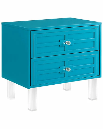 - Design details: MDF construction; lacquer finish; Lucite legs; two gliding drawers with Lucite pulls