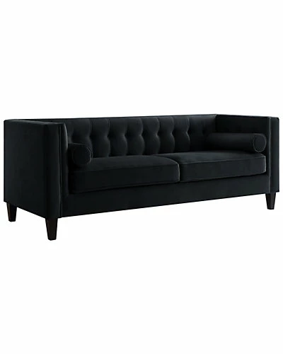 - Design details: Our velvet Tuxedo sofa adds a gentle sophistication in the confines of your living room, bedroom or entryway. This simple but elegant at the same time accent piece provides both functionality and a focal point of color and style that seamlessly blend with your main furniture to create a dynamic and cozy interior space to come home to. Straight lines, square arms, soft velvet handmade upholstery, biscuit button tufting and espresso finish tapered legs makes a brilliant combination for a perfect statement piece. Frame is made of combined solid wood and plywood, which makes construction to be firm and stable, and individually wrapped pocket springs give a nice support as you sit.