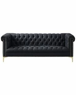 - Design details: Foam construction; scroll arm; PU leather upholstery; button tufting; Y-shaped legs; high density foam seating; sturdy plywood frame