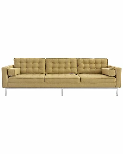 - Design details: Linen construction; button tufted; high density foam padding; two throw pillows; silver-tone straight legs