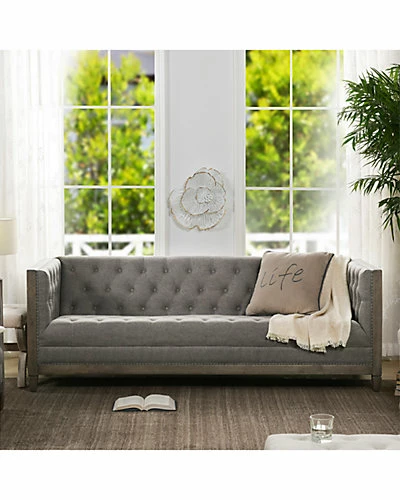 - Design details: For a touch of rustic style to your home décor, look no further than the Sylvan Tuxedo Sofa Collection by Jennifer Taylor Home! Featuring an all-natural textured wood grain oak frame, these 3-seater sofas provide solid support and exceeding comfort with their diamond tufted seats upholstered in a fine linen-polyester blend. The classically squared tuxedo style brings an air of sophistication to living rooms, bedrooms, and guest rooms, and the sofa’s attractive antique brass nailheads put an elegant spin on your lounging. And to bring your whole room together, be sure to check out the matching Sylvan Cocktail Storage Ottoman and Armchair!