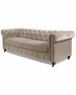 - Design details: Stylishly impeccable, the Winston Chesterfield Sofa Collection by Jennifer Taylor Home provides the finest luxury seating for your home. Richly upholstered in velvet, this lush sofa evokes the classic Chesterfield design with hand-applied button tufting, smooth curled arms, a spacious seating for 3, dark espresso legs, and studded antique brass nailheads. The Winston possesses a sophisticated vintage chic that never goes out of style and is sure to remain a centerpiece in your living room, guestroom, or parlor for years to come. Two convenient casters are included on the front legs for ease of relocation. To bring the whole room together, the Winston is also available a single armchair variation.