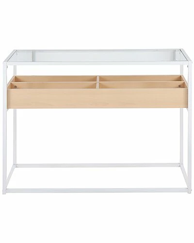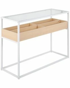 - Display Contemporary Console Table in White Metal, Natural Wood, and Clear Glass by LumiSource
