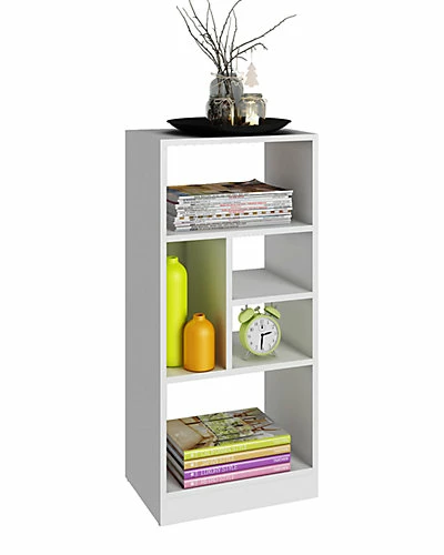 - Design details: The Valenca 2.0 35 High Bookcase is the perfect solution to meet all your storage needs. With unique shape and size shelves the Valenca is a pure eye catcher and will look remarkable in any setting. Its modern white finish provides just the clean and sleek appearance you are looking for. The Valenca 2.0 includes 5 shelves with a few backboards. Pair it with the Accentuations by Manhattan Comfort Valenca 1.0, 3.0, and 4.0 for more space and sizes. Made of high quality MDP with a white finish.