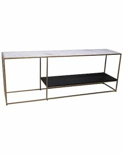 - The Mies media console makes entertainment elegant. A sleek affair with a gold-finished iron frame, Mies shelves are made of gorgeously contrasting marble. The tabletop is white, the shelf is black, and both are perfectly flattered by the gold frame to create a pleasant call-back to art deco. As well as a regal setup for your entertainment devices, the versatile Mies can also serve as a console table.