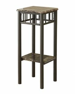 - Design details: Made from MDF, metal; Elegant cappuccino marble-look top in a contemporary design; Features an additional lower marble-look display shelf; Multi-purpose use for plants or decorative objects; Sturdy, stylish bronze metal base; Perfect accent table in your living room, hallway, family room, den, or office