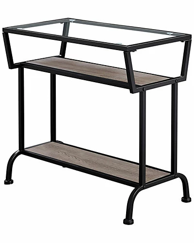 - Design details: Made from metal, MDF, tempered glass; Elegant and sturdy black metal framing with graceful curved feet; Spacious tempered glass tabletop to place a cup, a snack, decorative objects, magazines; 2 additional open shelves inserted with dark taupe wood-look MDF panels to place books, display pieces, store remotes; Compact size with an open contemporary/transitional design for any space; Quick and easy to assemble with full instructions included