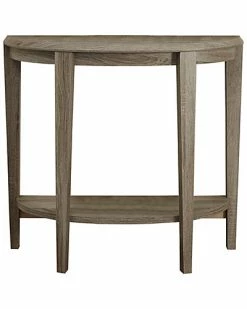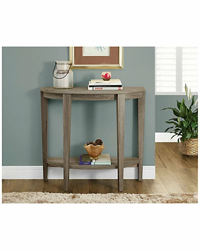 - Design details: Made from particle board, laminate, MDF; Stylish half-moon table shape in a warm dark taupe wood-look finish; Chic sturdy tapered legs; Two-tiered design for additional display space; Open bottom shelf ideal for storage or to display your favorite accents; Transitional design can be used as a sofa or hall console table