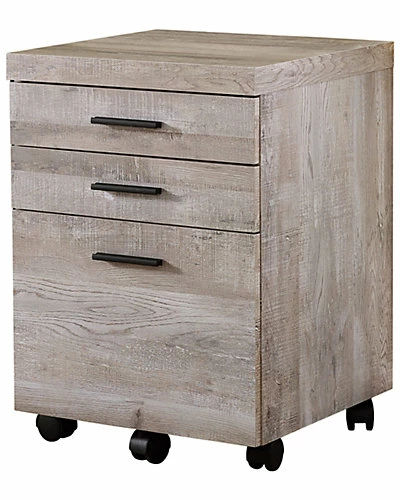 - Design details: Made from particle board, hollow-core, laminate, MDF, plastic; Finished in a trendy taupe wood grain look with stylish black plastic drawer pulls; Three spacious storage drawers on metal glides; Includes 5 castors for ease of mobility (2 locking, 3 non-locking); Bottom drawer fits standard and legal sized hanging folders; Modern, industrial style suitable for any decor