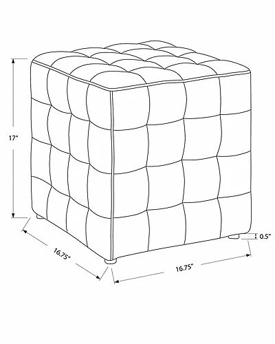 - Enjoy style and comfort right out of the box with this cube-shaped ottoman. Padded and upholstered all around in a grey leather-look fabric, this pouf features biscuit tufting on the top and all 4 sides which creates a pattern of small squares mimicking its boxy silhouette. The geometric shape of this versatile pouf will add a fun, contemporary touch to a family room, living room, or bedroom. It’s ideal as a footrest in front of a comfy chair or as a convenient surface to place a tablet or book. Plus, this portable foot stool is compact and lightweight enough to easily move from room to room if you need an extra seat when entertaining guests.