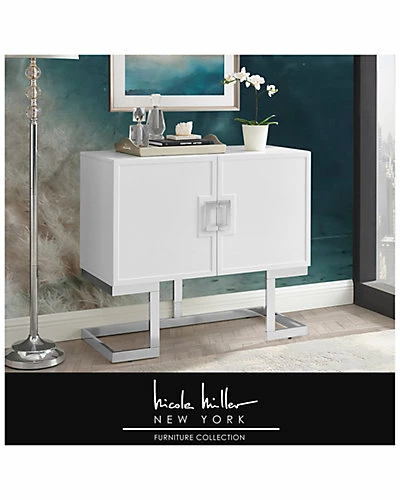 - Our clean-lined accent cabinet makes a statement no matter where it’s stationed, giving eye-catching contemporary appeal to your space. Crafted from manufactured wood, our cabinet has an open air stainless steel base design to keep your living space visuals clean. It features two doors to reveal two adjustable shelves (4 compartments) for tucking away a variety of objects, providing that modern flair with a fresh look in any room.
