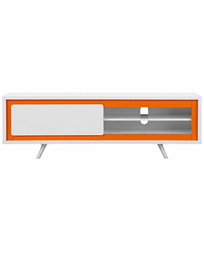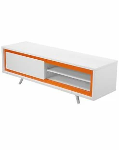 - Design details: Retro Modern short Media unit with 1 pull out soft close drawer and 1 open compartment for all of your media needs. Inside drawer measures 24.5Wx13Dx5H; Inside open compartment measures 26Wx16Dx8H; Open compartment comes with 1 shelf and 3 adjustable positions. Inside back of media unit has an open circle for your wiring; cabinet part including all drawers and doors is fully assembled. Assembly requires legs to be attached to already fully assembled cabinet part; high gloss lacquer top metal legs