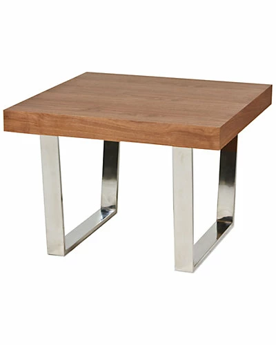 - Design details: Rectangular side table with high polished steel legs; wood veneer and high polished steel legs