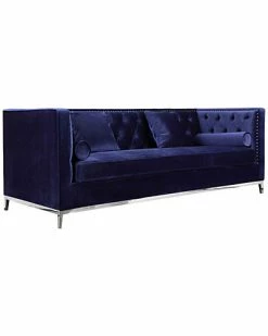 - Design details: Velvet tufted sofa with nail heads; modern meets glam; Seat height is 18″; velvet with polished steel