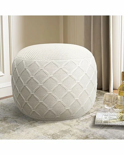 - Change up your seating configuration with this Santorini pouf. With its round shape and knitted cotton, this pouf brings an unexpected texture to your eclectic furniture collection. The polybead stuffing creates a supportive surface, so you can use this pouf as a footrest or an extra seat.