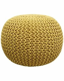 - Change up your seating configuration with this Santorini pouf. With its round shape and knitted cotton, this pouf brings an unexpected texture to your eclectic furniture collection. The expanded polystyrene stuffing creates a supportive surface, so you can use this pouf as a footrest or an extra seat.