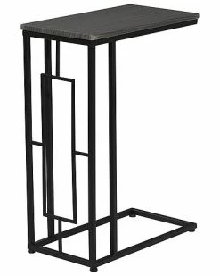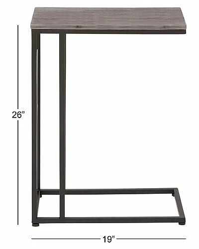 - Bring a finishing touch to your home with an inviting appeal with this beautifully crafted accent table. A compact friendly table providing you with an easy table you can slide under your couch arm at any time. Dark gray side table carries a compact design that you can easily tucked into your upholstered sofa or accent chair for convenient display. Designed with rubber stoppers at the base that prevent scratching furniture and table tops, as well as sliding around. This item ships in 1 carton. Suitable for indoor use only. Maximum weight limit is 100 lbs. Contemporary style. A contemporary style offers neutral elements and basic forms with a bold design. A living room end table constructed of sturdy and polished iron and wood materials. Contemporary accent table sports a dark grey rectangular table top with black metal frame and base. Compact side sofa table features a C-shaped structure with slender metal frames for convenient configuration and wooden top for non-slip grip. This item measures 19L x 10W x 26H; weight 3.3 lbs