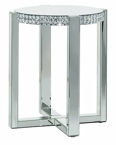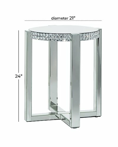 - This wood and glass accent table is sure to make a bold statement in your lobby, living room, or home office. Bring a finishing touch to your home with an inviting appeal with this beautifully crafted accent table. A compact friendly table providing you with additional storage space any where in your home. Designed with rubber stoppers at the base that prevent scratching as well as sliding around. Suitable for indoor use only. Maximum weight limit is 50 lbs. Glam theme.