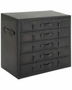 - Beautifully crafted with durable structure and design for a long lasting enjoyment to keep your space free of clutter. A spacious piece of furniture that can instantly transform the look of any room in your home. Storage dresser trunk will complement dark leather sofa with other heirloom decor for the perfect antique design style. This item ships in 1 carton. Built with 5 drawers each measuring 31″W x 14″ x 4″H with 25 lbs weight limit capacity. Suitable for indoor use only. Maximum weight limit is 125 lbs.; each drawer can hold up to 25 lbs. Traditional style. A classic and timeless style of design for your traditional home setting. Stacked storage trunk dresser is made of solid wood and faux leather. This traditional rectangular storage trunk features a black with dark brown undertone and antique gold hardware. Stacked style storage unit features a vintage inspired luggage drawers adorn with leather buckle straps, bolted handles and rivet detailing for a realistic touch. Item measures 36L x 16W x 32H and weighs 76 lbs