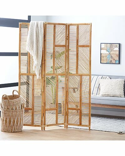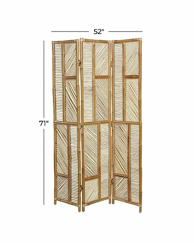 - Providing function in a stylish way, these room dividers work double duty as privacy screens and standing art. Stand against a wall as a large accent piece, or in the middle of a room to add some privacy and divided space, this room divider is too style to hide away. Contemporary design. This contemporary wooden room divider is great for styling your space and blocking unattractive area. This room divider features 3 panels. This item ship in one carton. Made in Indonesia.
