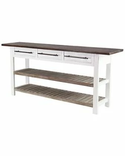 - Contemporary wood table, features a rectangular black table top, and three slide-out drawers with bar handle, brown finish on two shelves