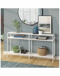 Abraham + Ivy Sivil 55In Matte White Console Table With Metal Shelves Home