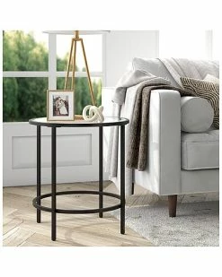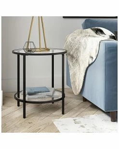 Abraham + Ivy Sivil Satin Nickel Round Side Table With Glass Shelf Home