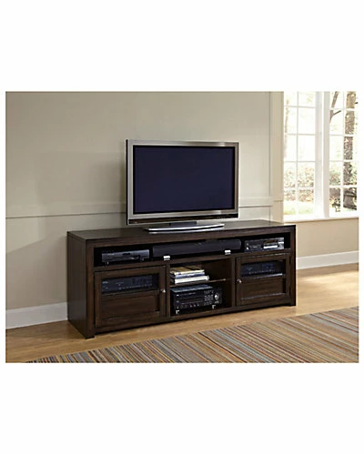 - Design details: A classic design that is offered in three sizes to assist with your entertainment needs. Triumph is generously constructed to handle your components and provide you with extra storage, all the while, being an attractive piece of furniture that you’ll value for years to come. Hand applied finish on pine veneers. Straight line overlays separating glass and wood. Features doors with adjustable shelving and grommets for wire management. Three sizes to choose from. Will accommodate most sounds bars. Antique copper finished hardware with knob and square back plate.