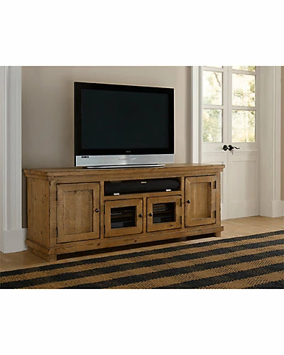 - Design details: bestows elegance with the splendor of a unique finish and the nature of salvaged wood. Unique tongue and groove construction is a reminder of classic construction built to last Hand applied distressing on rough hewn and planed pine solids to achieve a natural, vintage look: made to look like paint is chipped and natural pine color shows through. Tops and ends are solid planked panels, oversized thick tops and parting rails. Tongue and groove construction with pine solids produce durable cases. Gunmetal finish on nostalgic knobs. Adjustable shelves, grommets for wire management. Wood and glass doors. Units can accommodate most sound bars. Consoles are fully setup.