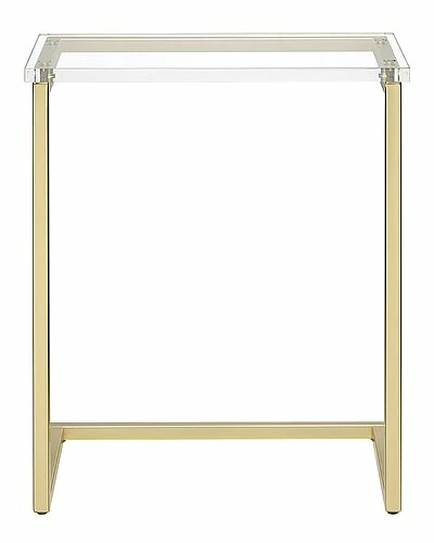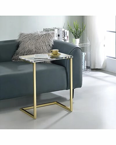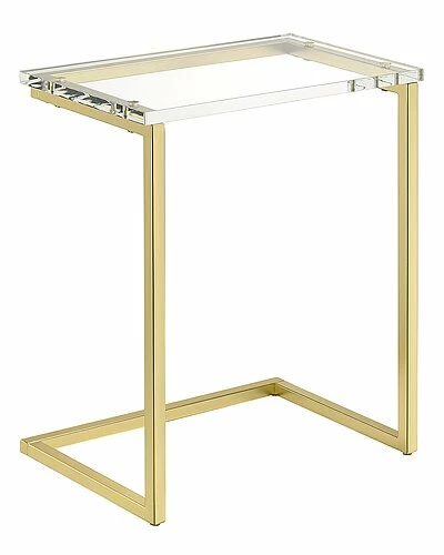 - No better way to update your space than with this sleek ultra-hip acrylic C table. A great transparent modern style that is all the rage and here to stay. Thick high-quality acrylic combined with a metal base in a gorgeous satin gold finish is perfect for a cool swanky upholstery setting or just a simple clean classic look. Pull it up for your at home work needs or just a cup of coffee. Whatever the case, it will be a favorite.