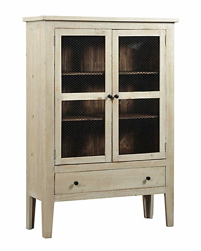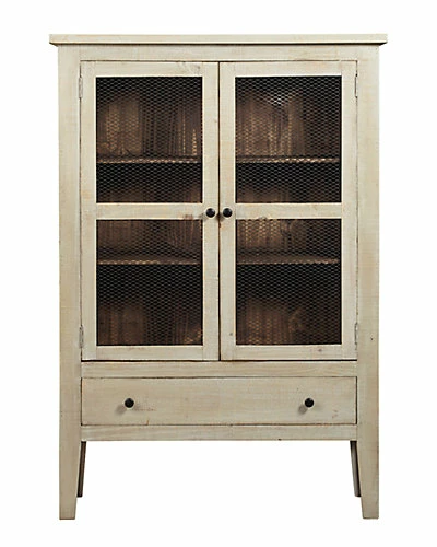 - Design details: Need a little extra storage space or just a great looking display cabinet? Isabella is a fabulous choice to display your daily essentials, favorite collection or priceless knickknacks, even use as a very cool pantry in the kitchen. The Washed Linen finish with a darker pine interior give it a fresh, casual, stylish look. The doors are fitted with metal wire that can lend itself to a rustic, farmhouse feel, or just add to the interest of your own design. Combination Washed Linen and Pine interior finish. Simple dark bronze drawer knobs. Two fixed shelves in cabinet interior.