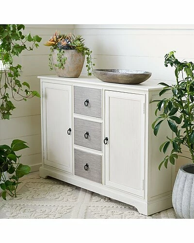 - For those that want a touch of tradition, this Adiland Sideboard is the perfect fit. Adilands classic design stands the test of changing trends, while the distressed white finish on its frame and three contrasting greige drawers give a hint of modern farmhouse charm. Two additional doors provide ample storage in any space.
