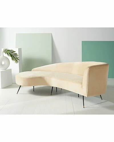 - An invitation to the elegance of couture style, this Evangeline Parisian Sofa is a sculptural focal point in any living room. Perched atop slender metal legs with chic gold caps, Evangeline’s plush sand velvet highlights its curved silhouette, making for lasting luxurious lounging.