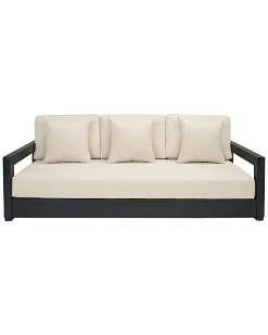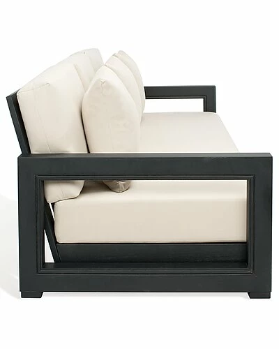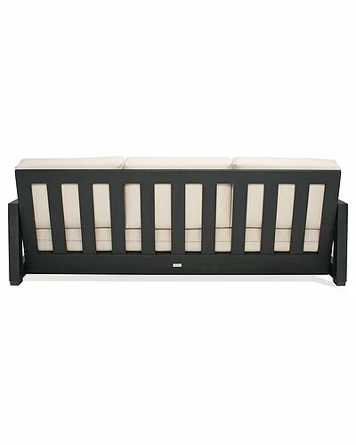 - Sit down, relax, and unwind in this elegant Montford 3-Seat Sofa. Styled with contemporary cut-out arms in sleek black metal, Montford’s plush beige upholstery creates a luxe aura of comfort.